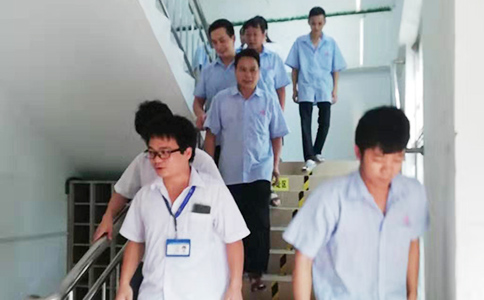 下午四點(diǎn),疏散逃生演練正式開始,各部門的員工按照各車間負(fù)責(zé)人指示從安全通道及時(shí)有序撤離,及時(shí)到達(dá)緊急集合處,籃球場。