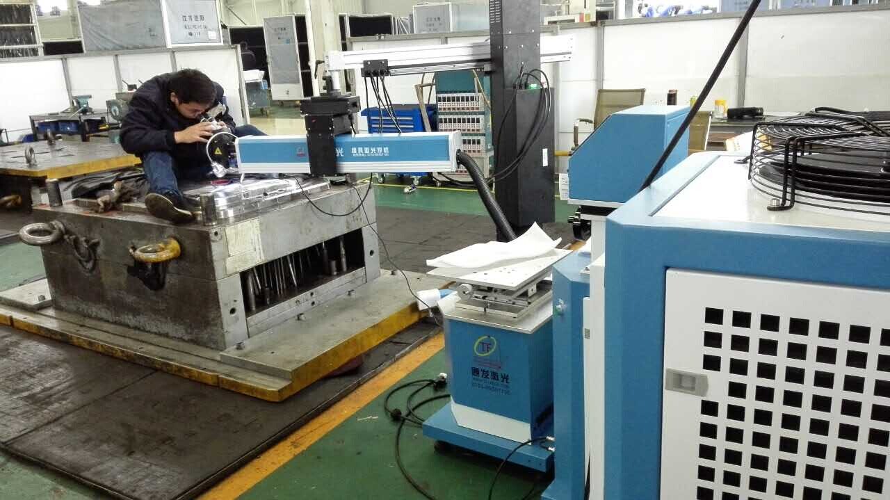 工欲善其事,必先利其器,要想對模具,特別是特大模具進行修復,必須要有好的設備,以前一般采用氬弧焊,但由于氬弧焊的熱量過大,很容易造成模具扁形,如果熱處理過的模具,氬弧焊修復后還有可能應局部熱脹冷縮而導致模具開裂,直接導致模具報廢。通發(fā)激光針對特大型模具研發(fā)出一款修復利器,型號為:TFL-200III-DB,即吊臂式模具激光焊機。吊臂特大模具焊接系統(tǒng)還可以配合其他不同功率型號的模具激光焊機上,屬于通用型周邊設備,操作時可將激光頭安裝在一個可以多方向運動的吊臂系統(tǒng)上,可實現(xiàn)半徑1.2米的特大型模具激光修復。