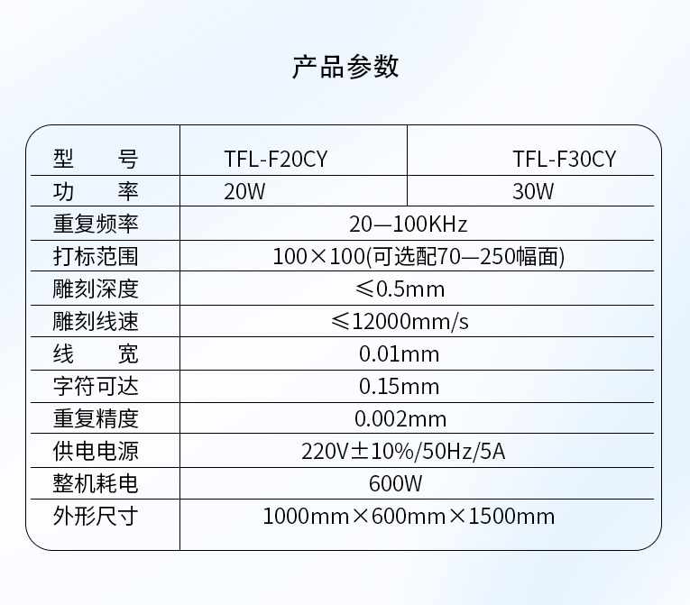 通發(fā)激光研發(fā)TFL-F20CY激光打標(biāo)機(jī),金屬材料和塑膠材料都進(jìn)行打標(biāo)加工,本激光鐳雕機(jī)配置成熟的20W和30W國產(chǎn)光纖激光器,國產(chǎn)振鏡、國產(chǎn)軟件,性價比高,激光打標(biāo)效果可達(dá)進(jìn)口設(shè)備的95%,是節(jié)約成本購買設(shè)備的信賴之選!